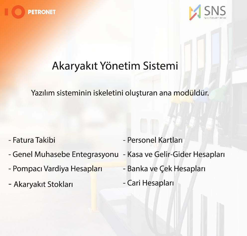 Giriş–çıkış kayıtları ve stok analizleri, fire kayıtları, kesafet kayıtları, birim fiyat değişim kayıtları, alış – satış fiyatları kontrolleri, toptan ve sabit pompa fiyat tanımları, tank litre takipleri.